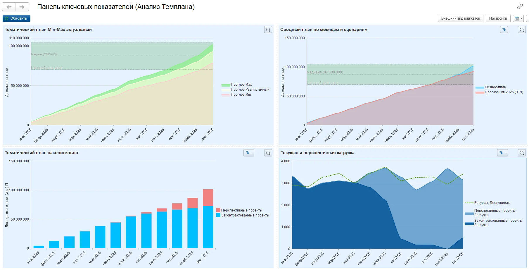Витрина данных для 1С:Аналитика, позволяющая строить наглядные дашборды по всей проектной деятельности компании.