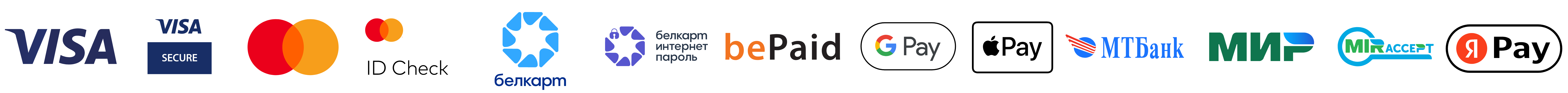 Мы принимаем платежи по следующим банковским картам: Visa, Visa Electron, MasterCard, Maestro, Белкарт.